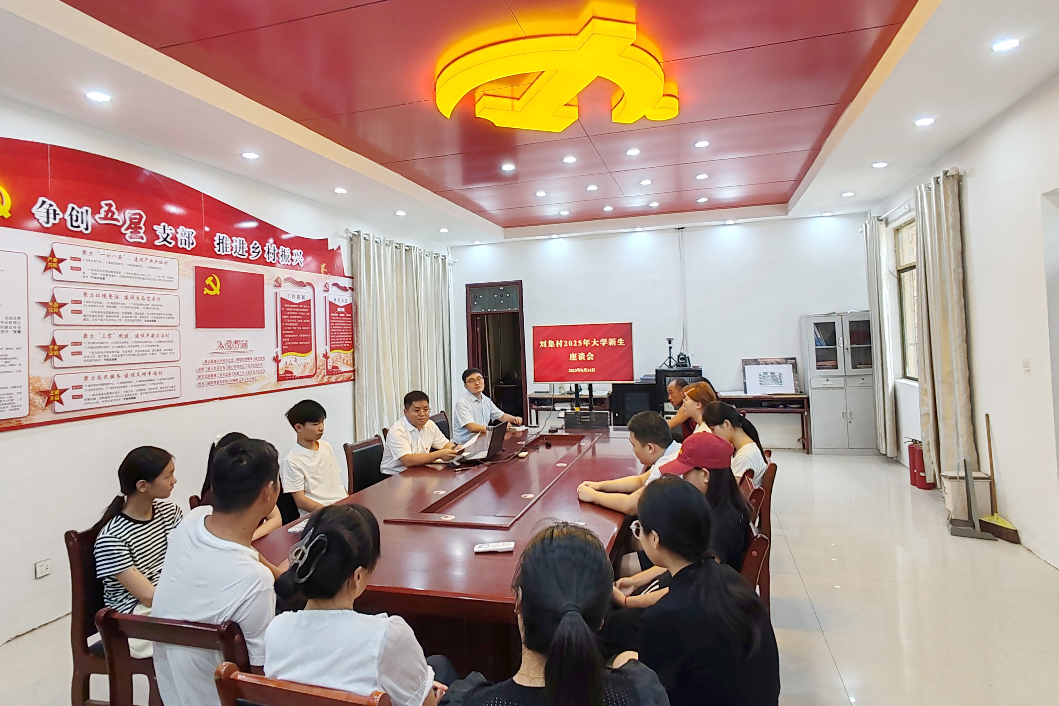 新一學年開學在即,8月14日,河南鐵建投集團駐劉集村第一書記鄭金雷帶領駐村工作隊,在村室精心組織了一場別開生面的座談會,為村里12位即將踏入高校的2025級大學新生送上“入學第一課”。